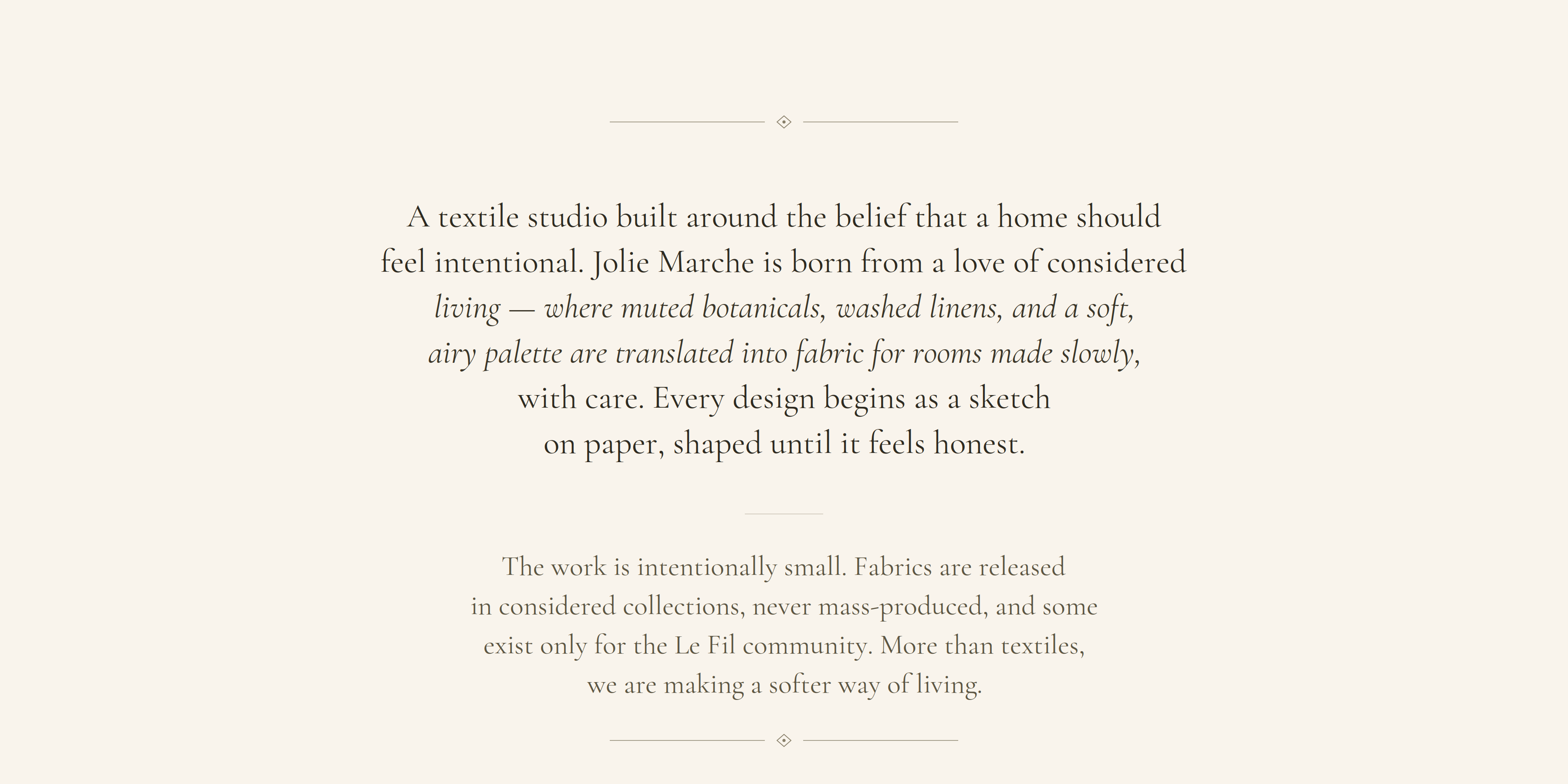 I couldn't be more pleased with my Jolie Marche pillows. The fact that they are handmade makes them even more special!