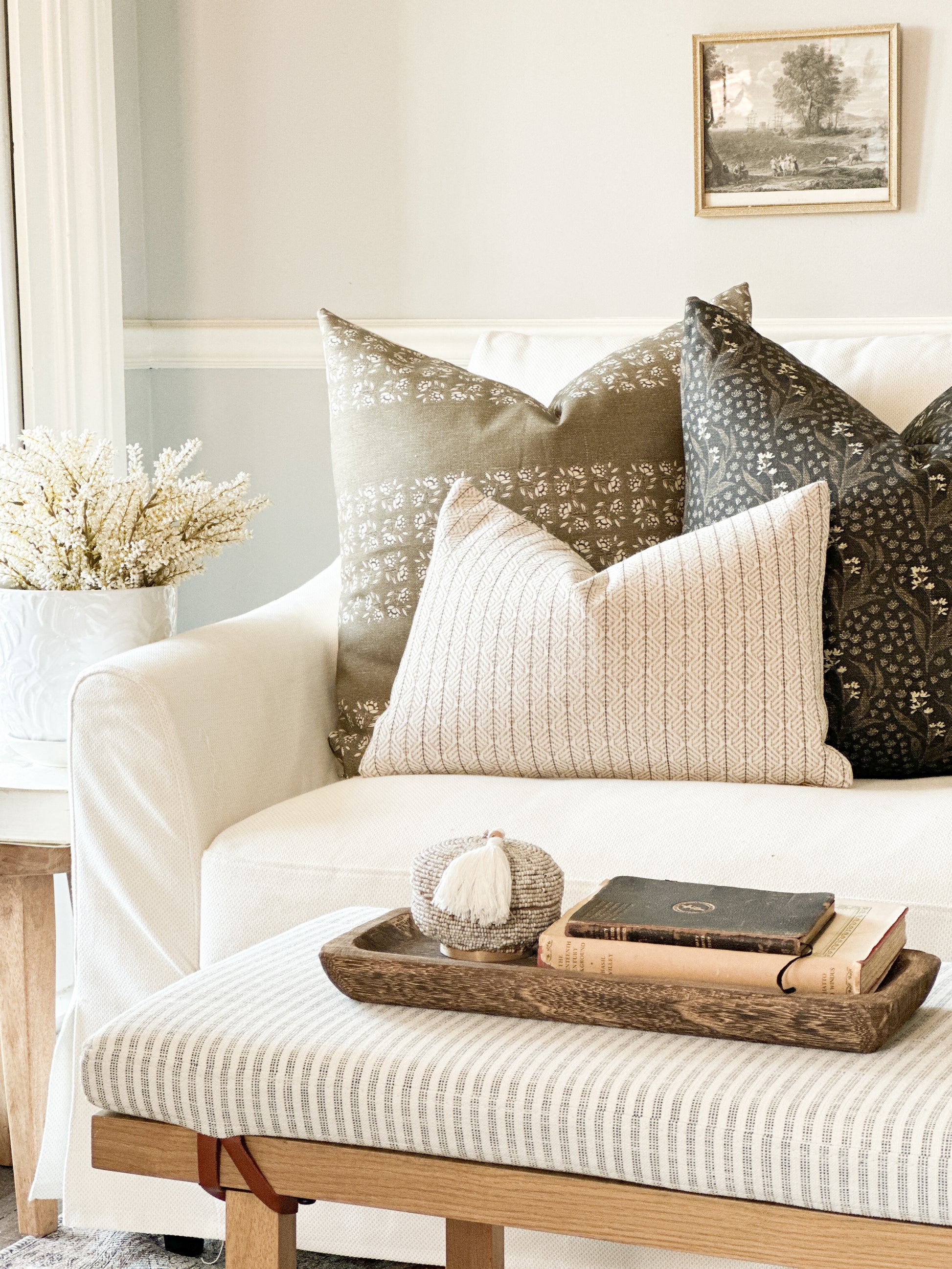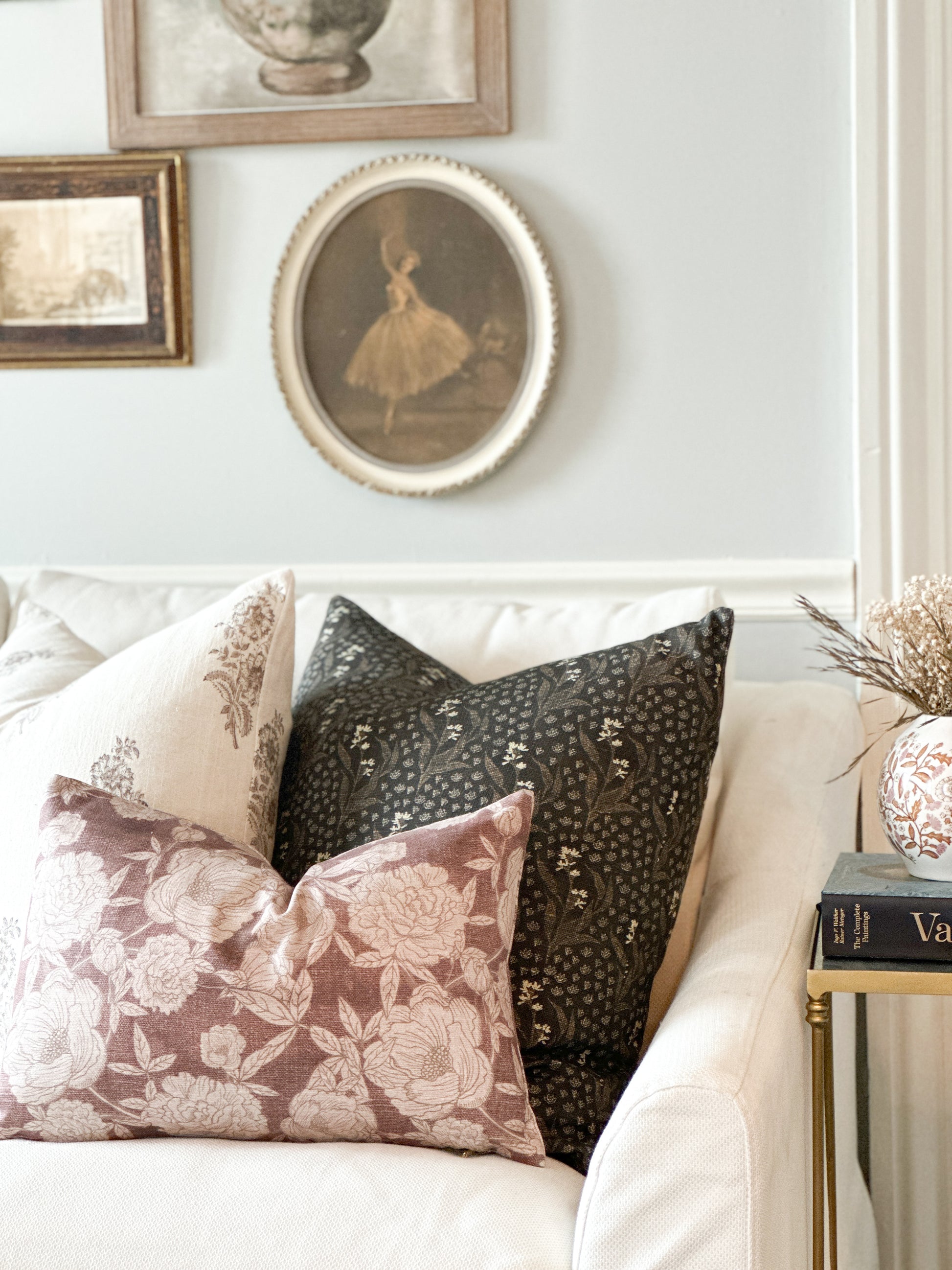 Soft black with gold and ivory floral