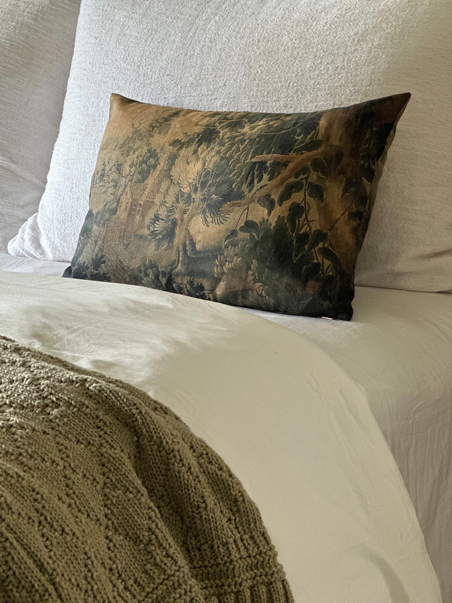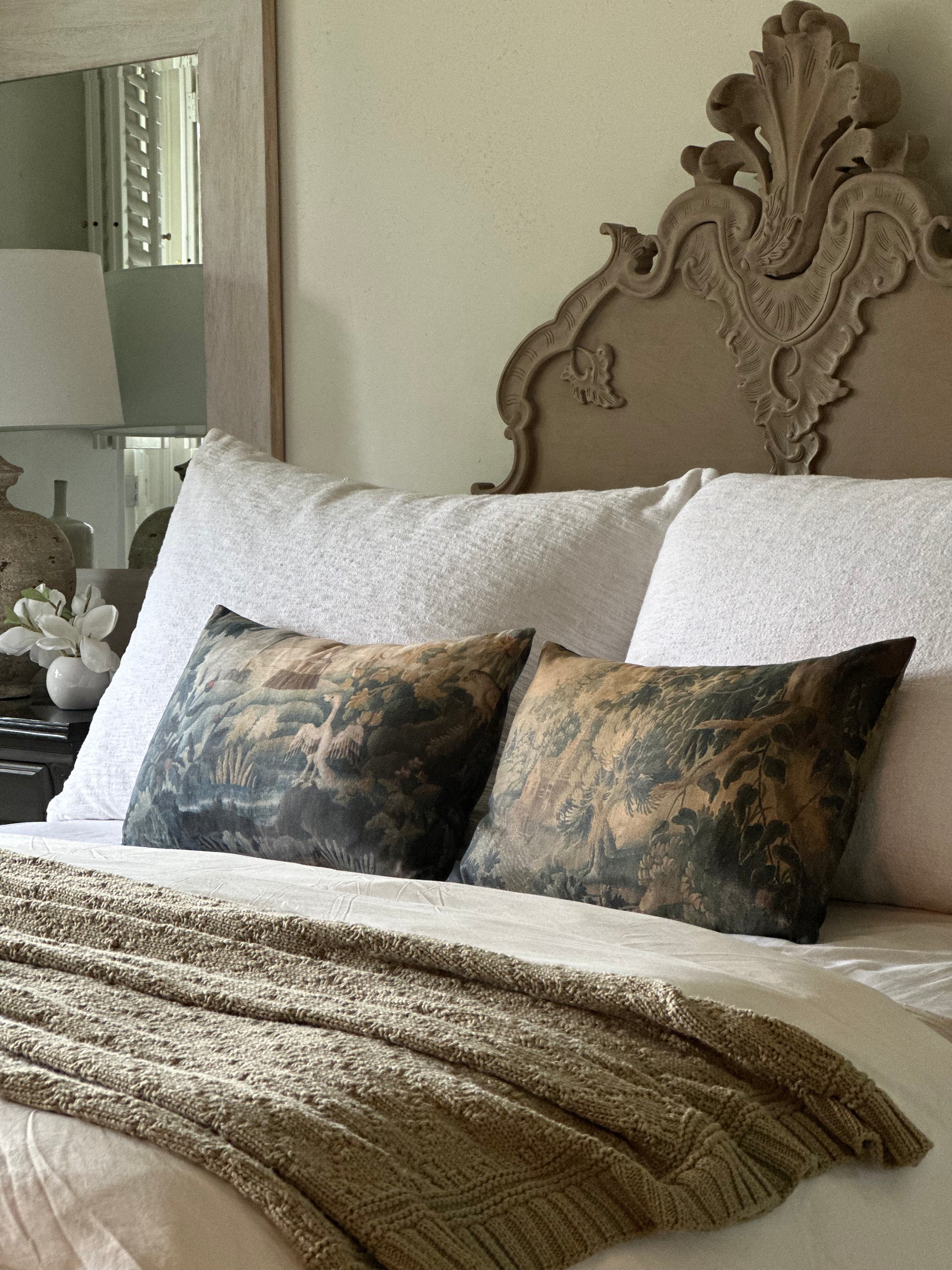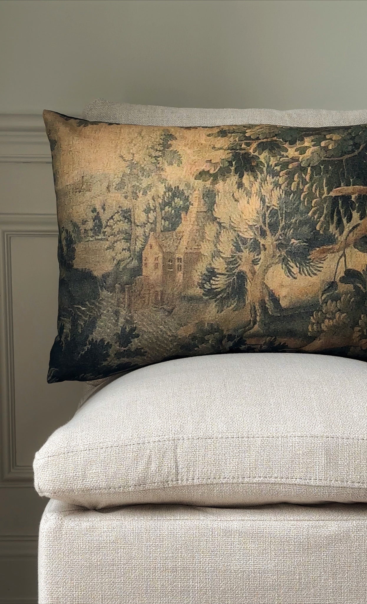 A nod to the elegance of European luxury, our Old World Collection of pillow covers are inspired by the intricate detailing and timeless charm of centuries-old French tapestries. These reproductions printed on a linen cotton blend fabric are meant to feel time worn and are perfect for adding a touch of French to your home decor.