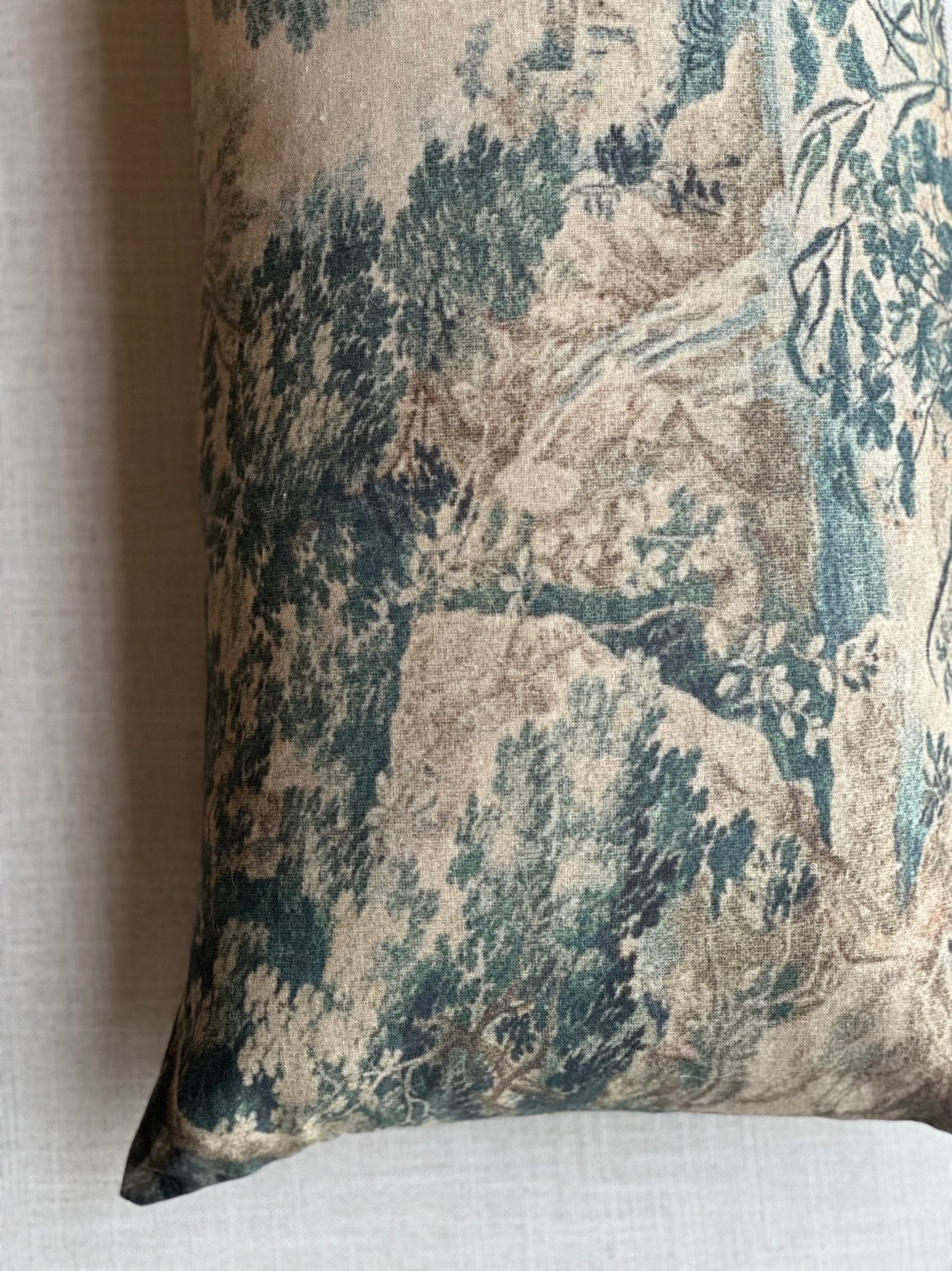 **note, this is not an antique woven tapestry. This is a reproduction on a linen/cotton blend fabric.