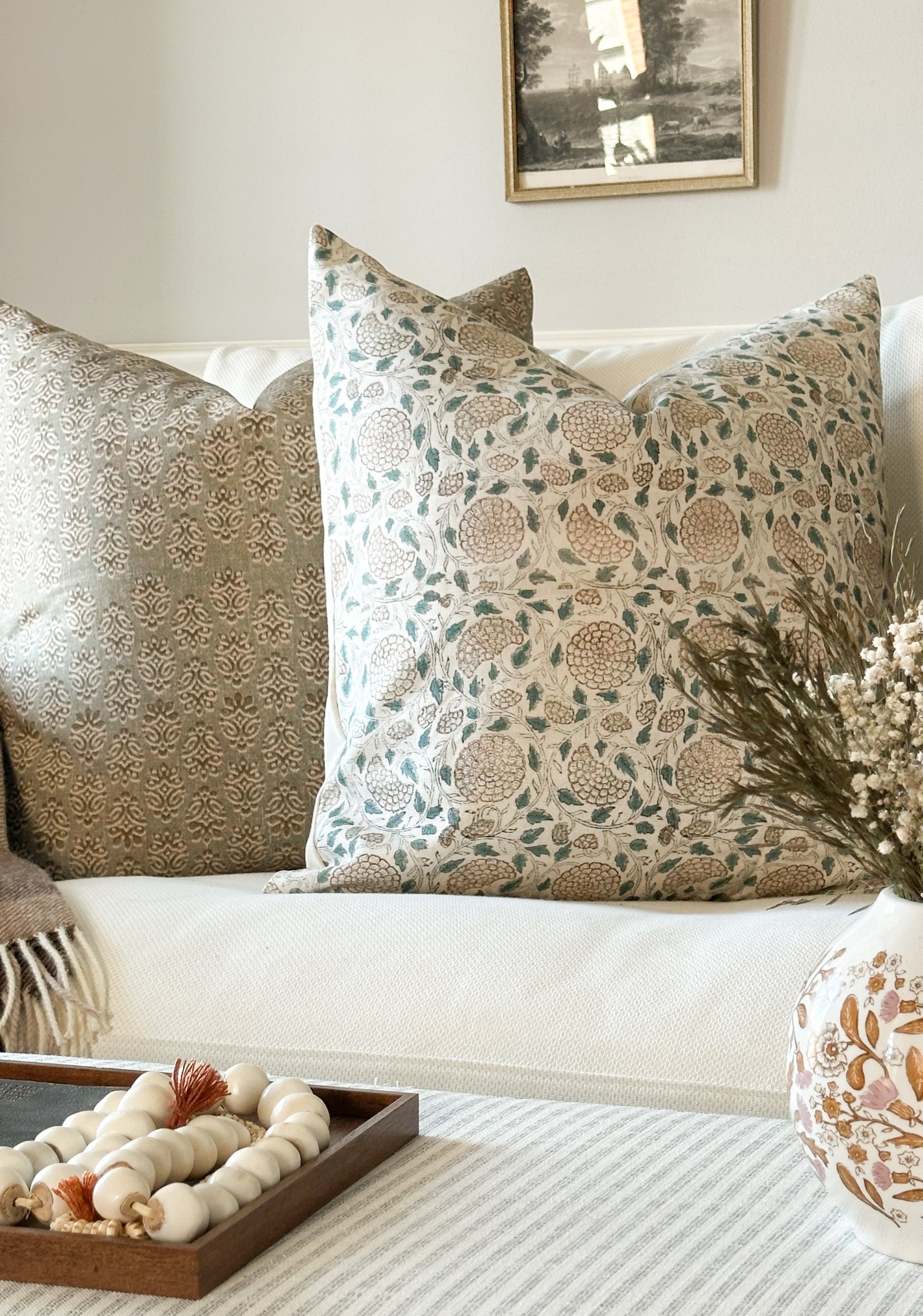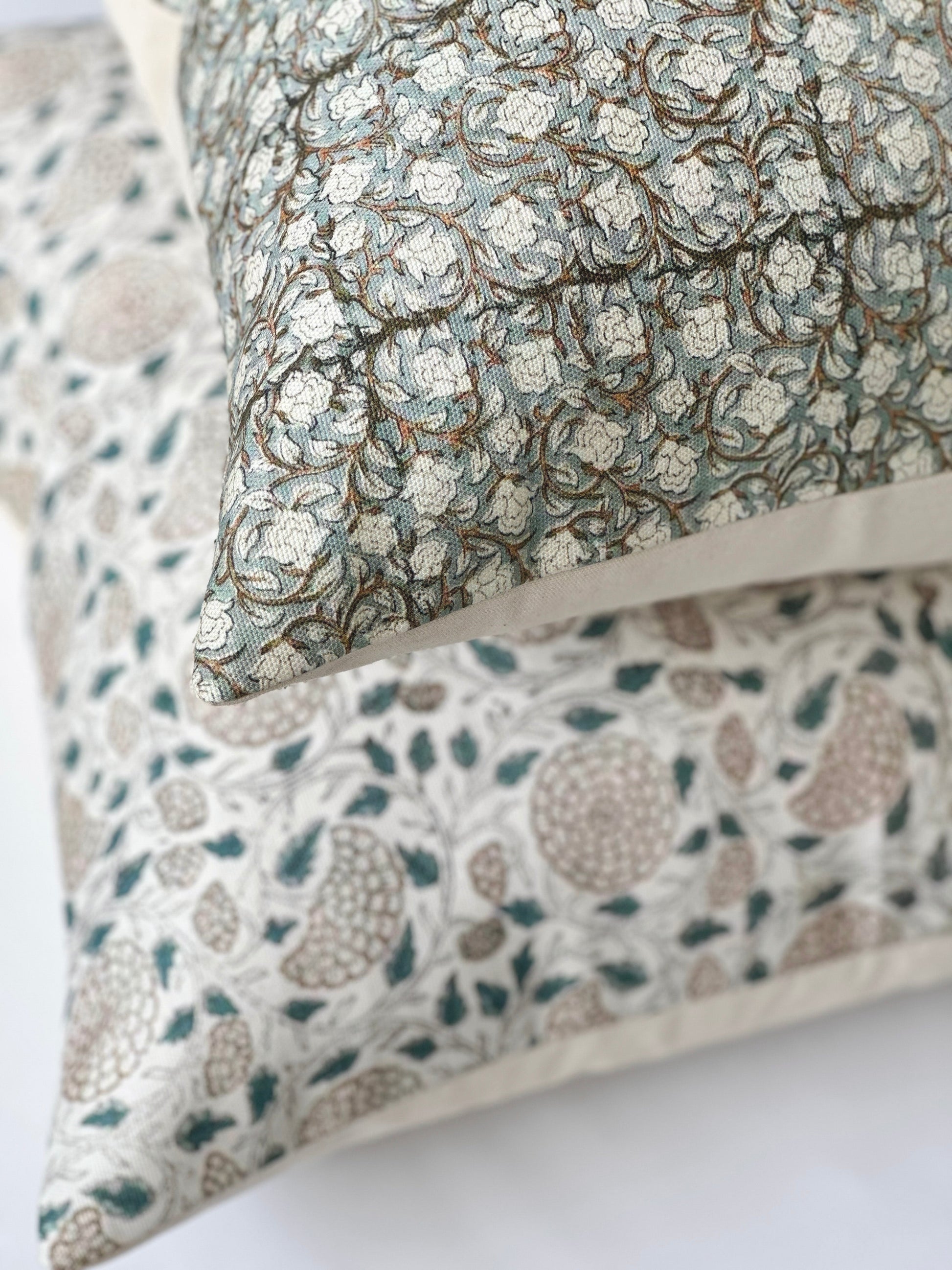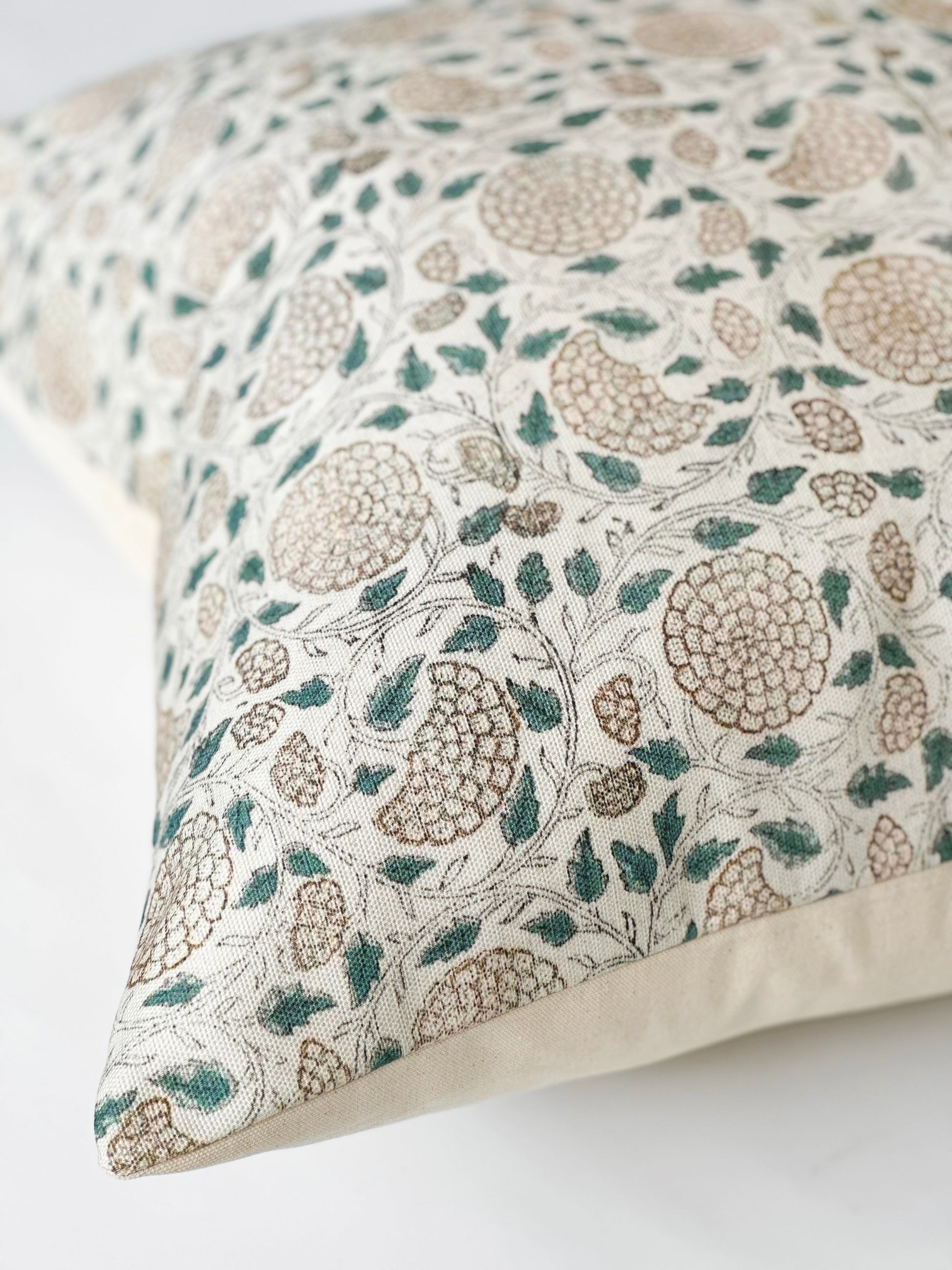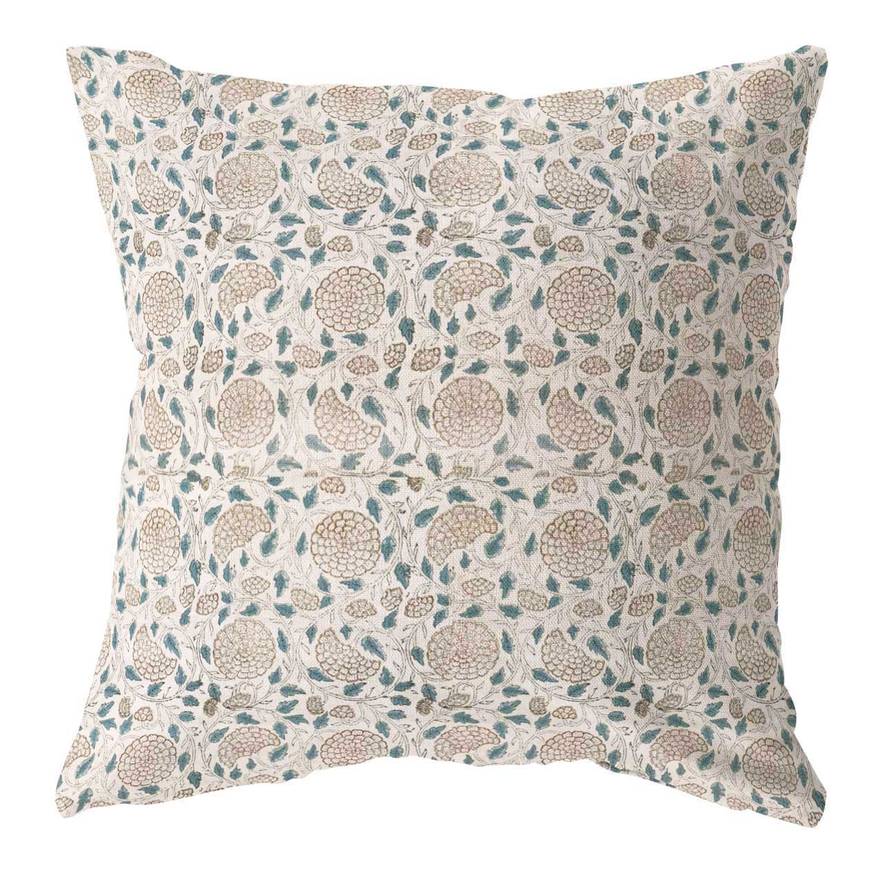 Teal and brown floral block print