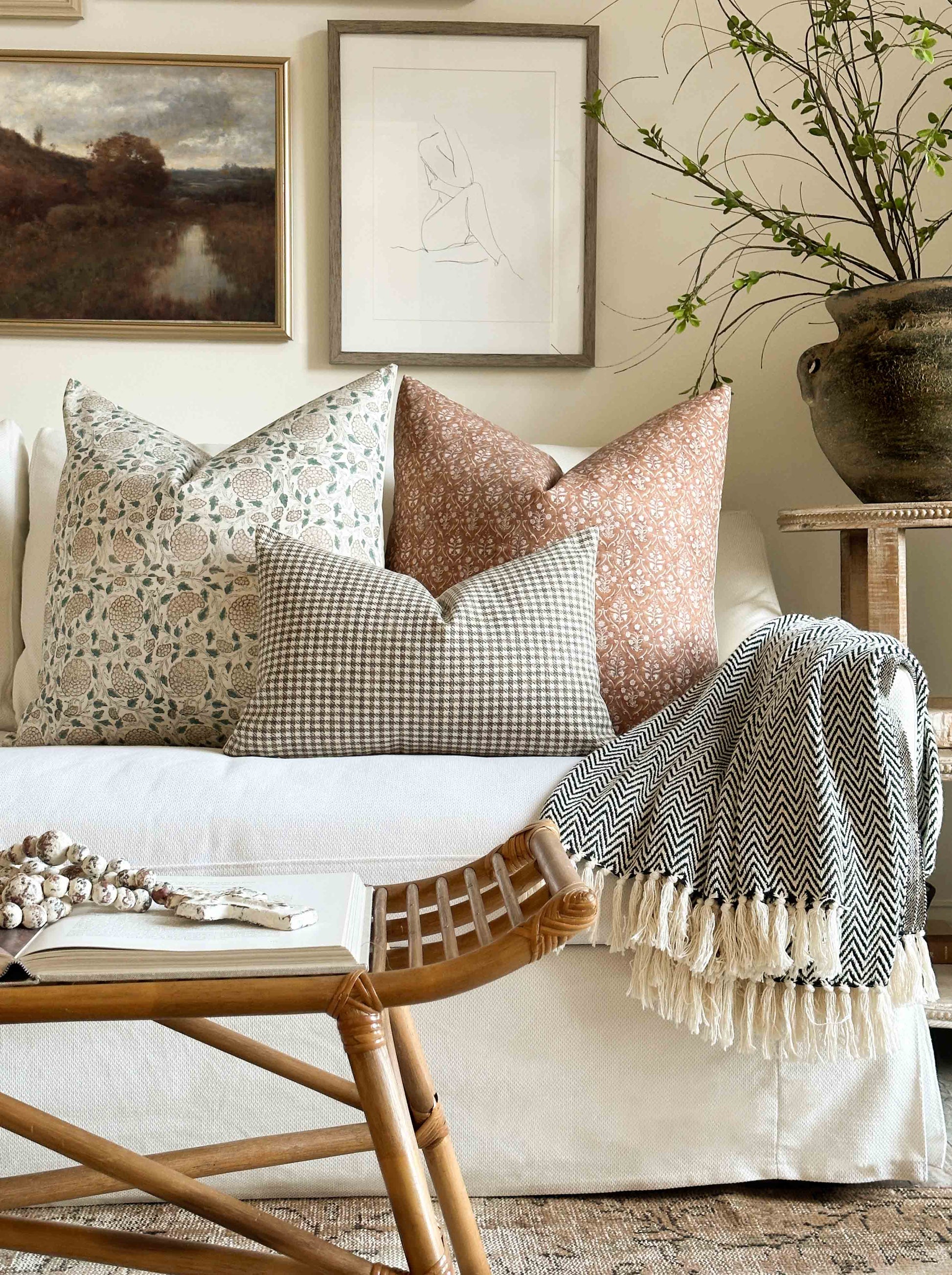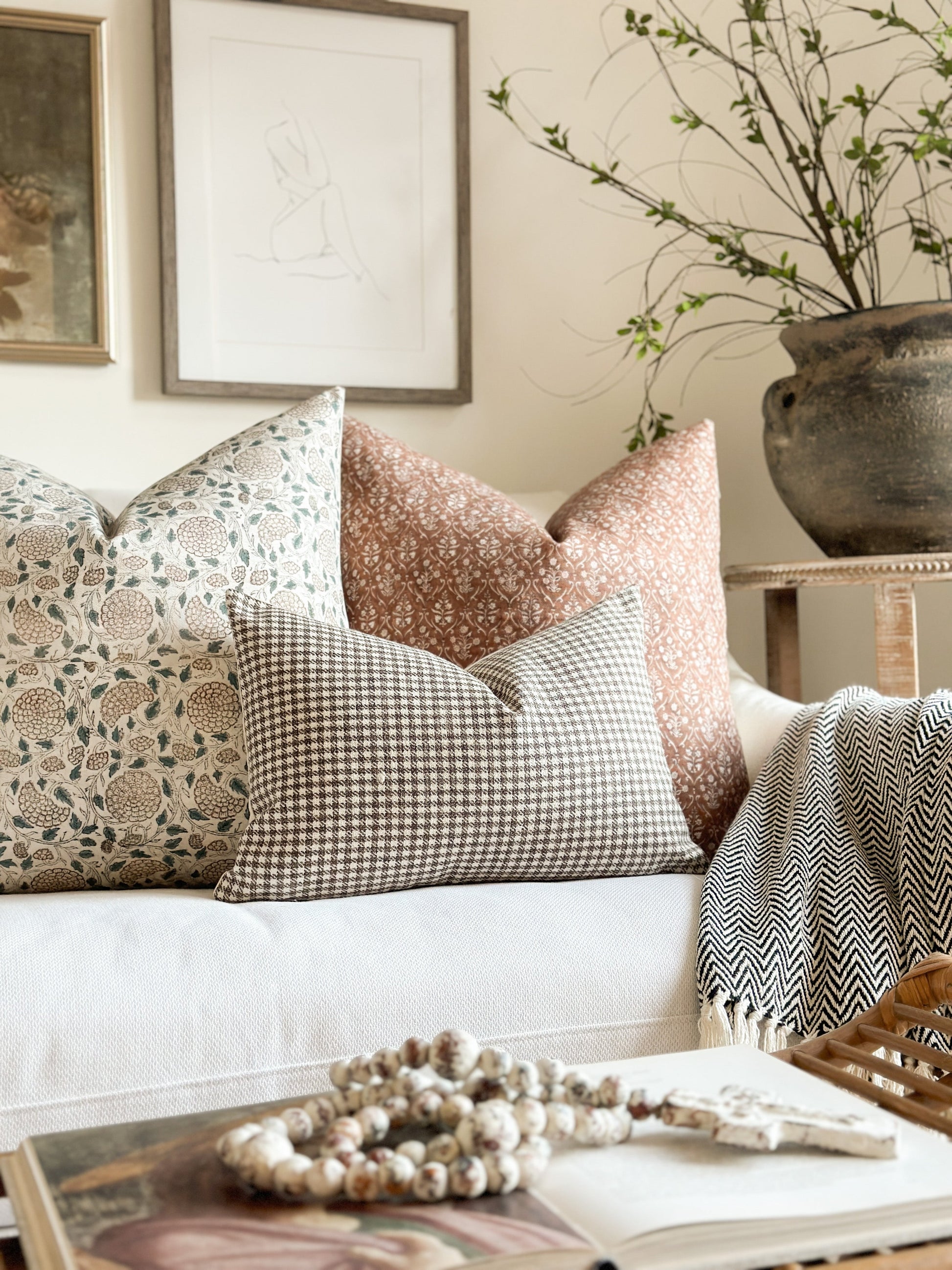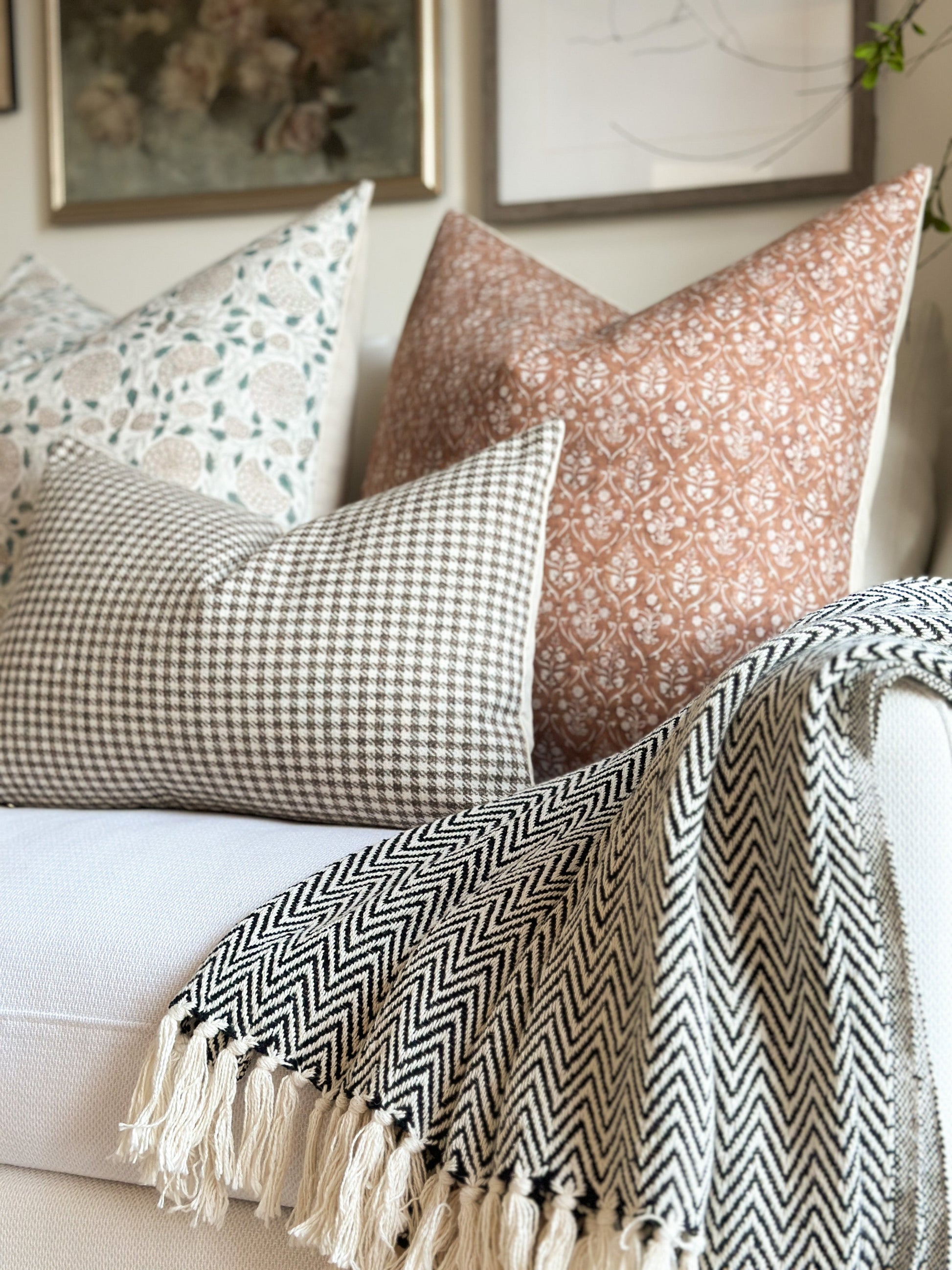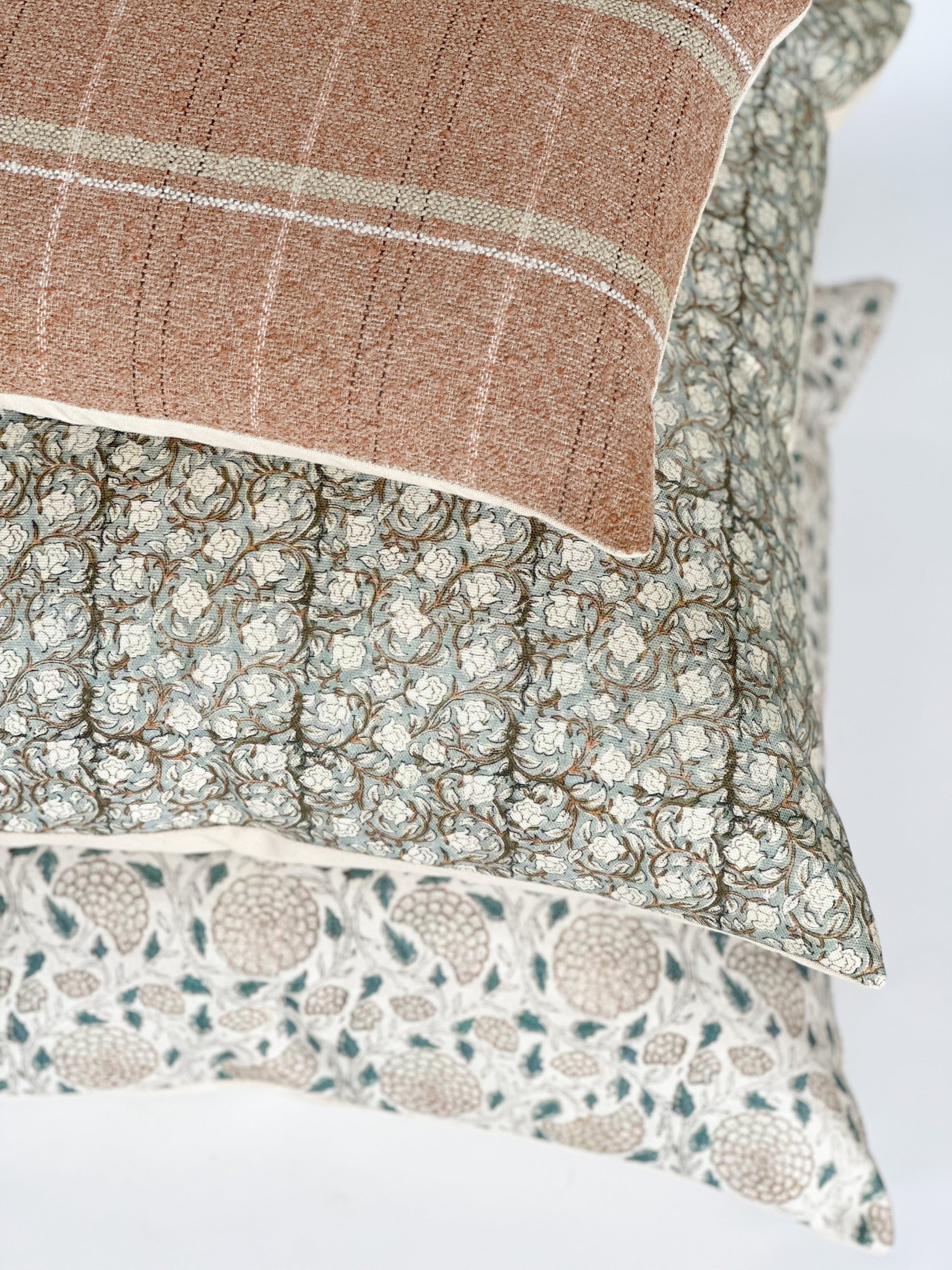Teal and brown floral block print