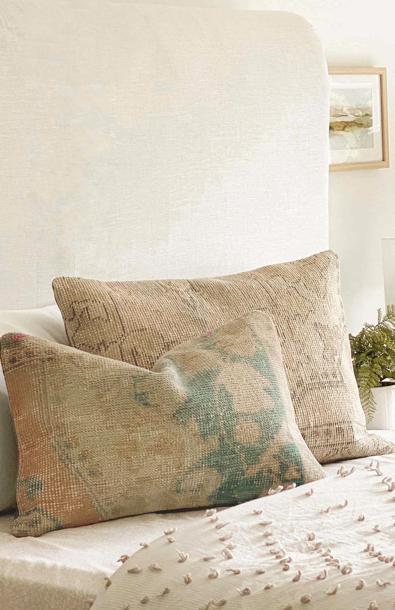 Our Vintage line of products are imported from all over the world and may contain flaws, discoloration, and imperfections that are consistent with vintage, timeworn fabrics and only add to their character. Vintage pillow covers are sold as is and are final sale.